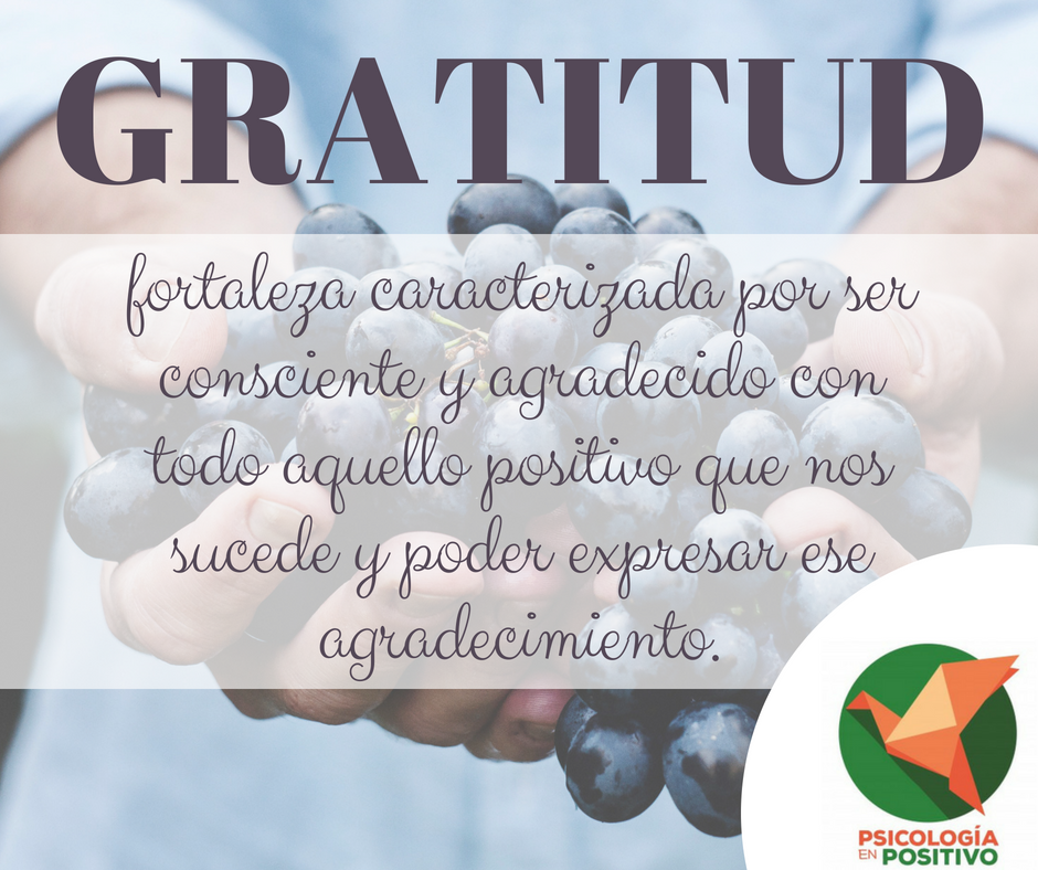 La gratitud es una fortaleza caracterizada por ser consciente y agradecido con todo aquello positivo que nos sucede y poder expresar ese agradecimiento.